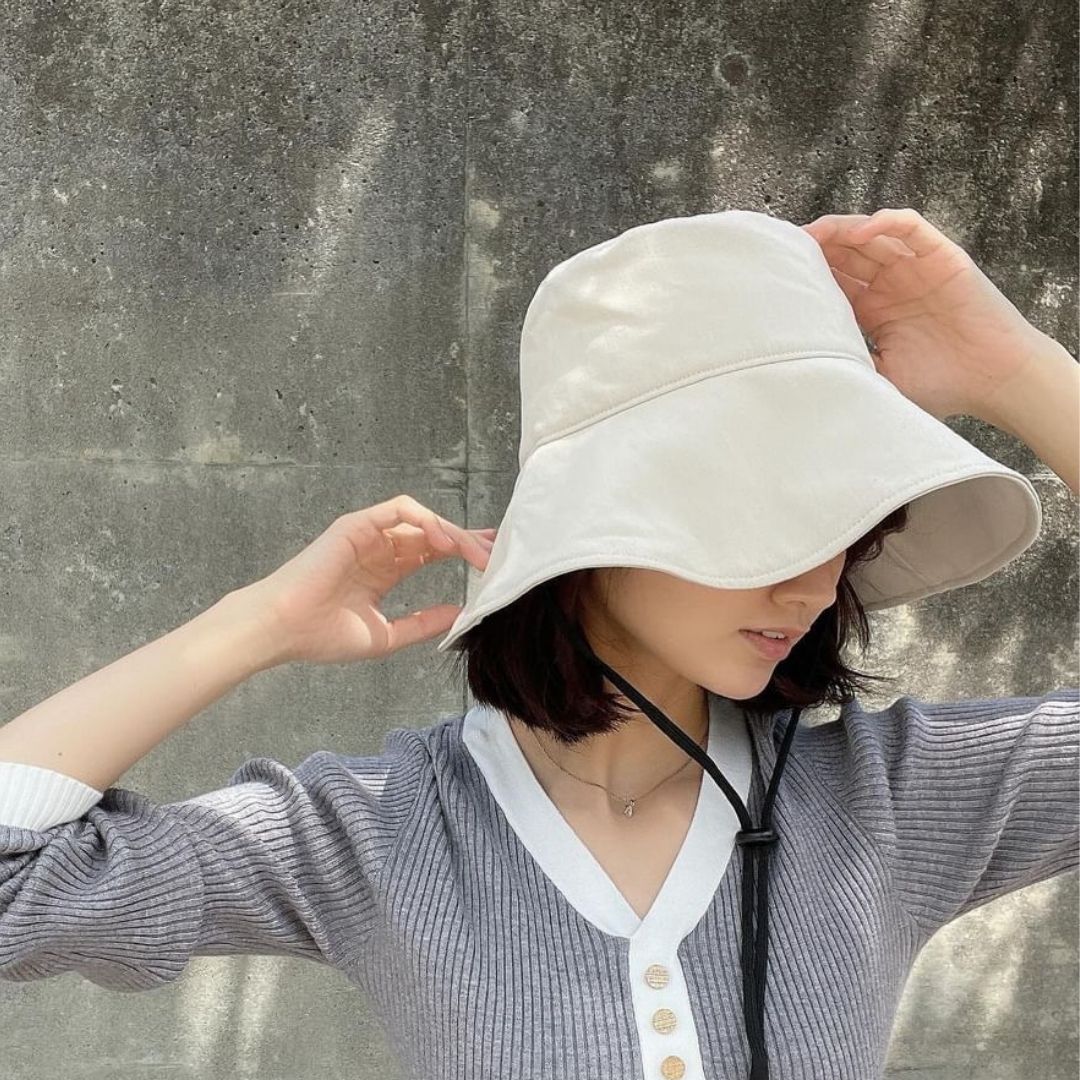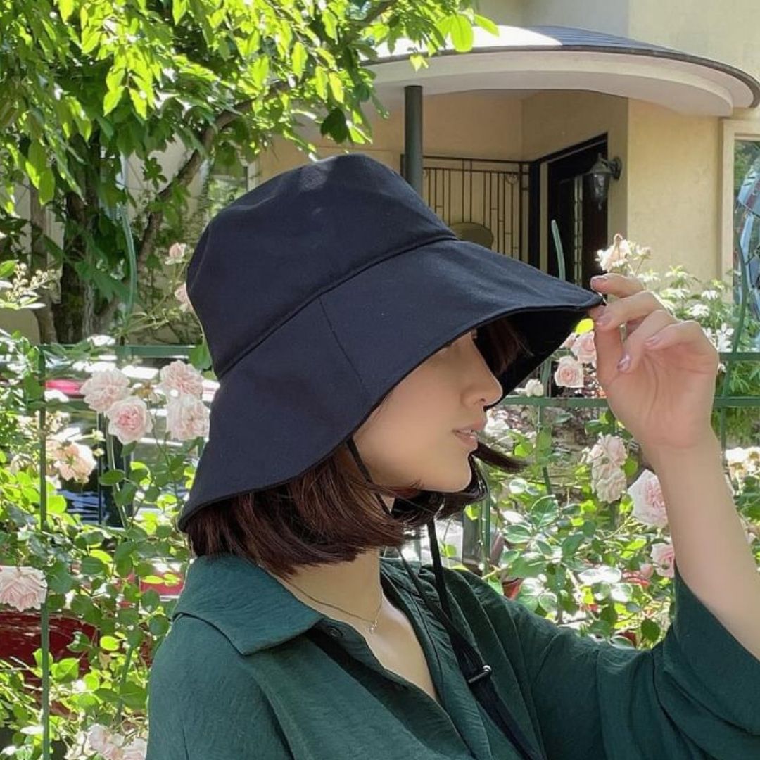◎ デザインも実用性も考慮されたこの帽子は、つば広デザインで顔や首筋を広範囲にカバー。